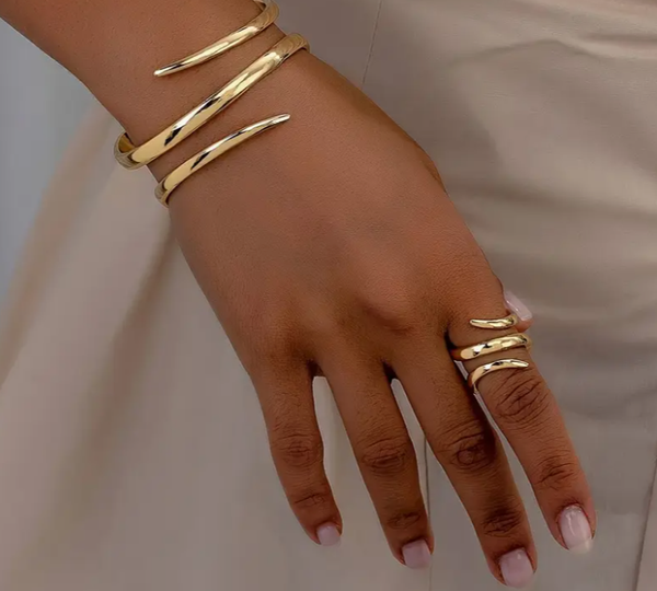 Expertly crafted for a timeless and versatile appeal, the MELINDA SET includes a 2-piece set of an adjustable ring and cuff bracelet. Made for comfort and style, this set complements any outfit and adds a touch of elegance with its adjustable feature.