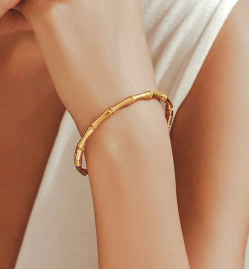 Effortless style and natural beauty come together in our Bamboo Bracelet. Crafted to mimic the elegant shape of bamboo, this popular bracelet adds a touch of sophistication to any outfit. Made from high quality materials, it's both durable and stylish, making it the perfect accessory for any occasion.