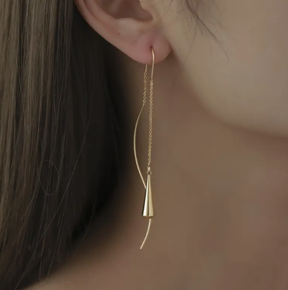 These elegant teardrop thread earrings feature a unique pull-through design, creating a modern twist on a classic accessory. Made with high-quality materials, these earrings are comfortable to wear and provide a sophisticated touch to any outfit. Elevate your style with these stunning earrings.