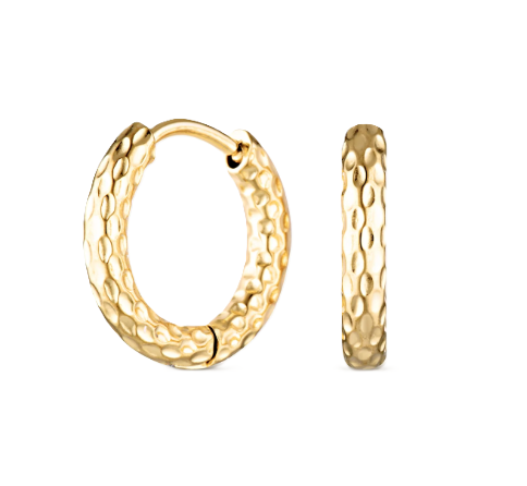 These SAMARA EARRINGS feature a stunning hammered design that adds texture and dimension to any outfit. With their versatile hoop shape, they can be worn for any occasion, elevating your style with a touch of elegance. Crafted with expert precision, these earrings are a must-have for any jewellery collection.