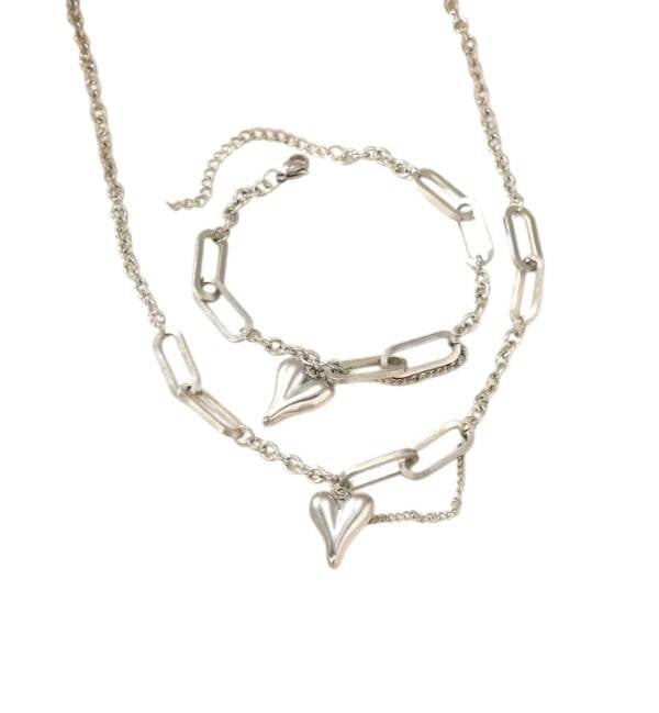 This BRITNEY 2 PIECE SET is a must-have for any jewellery lover. The stunning heart pendant bracelet and necklace set will add a touch of elegance to any outfit. Crafted with quality materials, this set is both stylish and durable. Perfect for any occasion, it's a versatile addition to any jewellery collection.