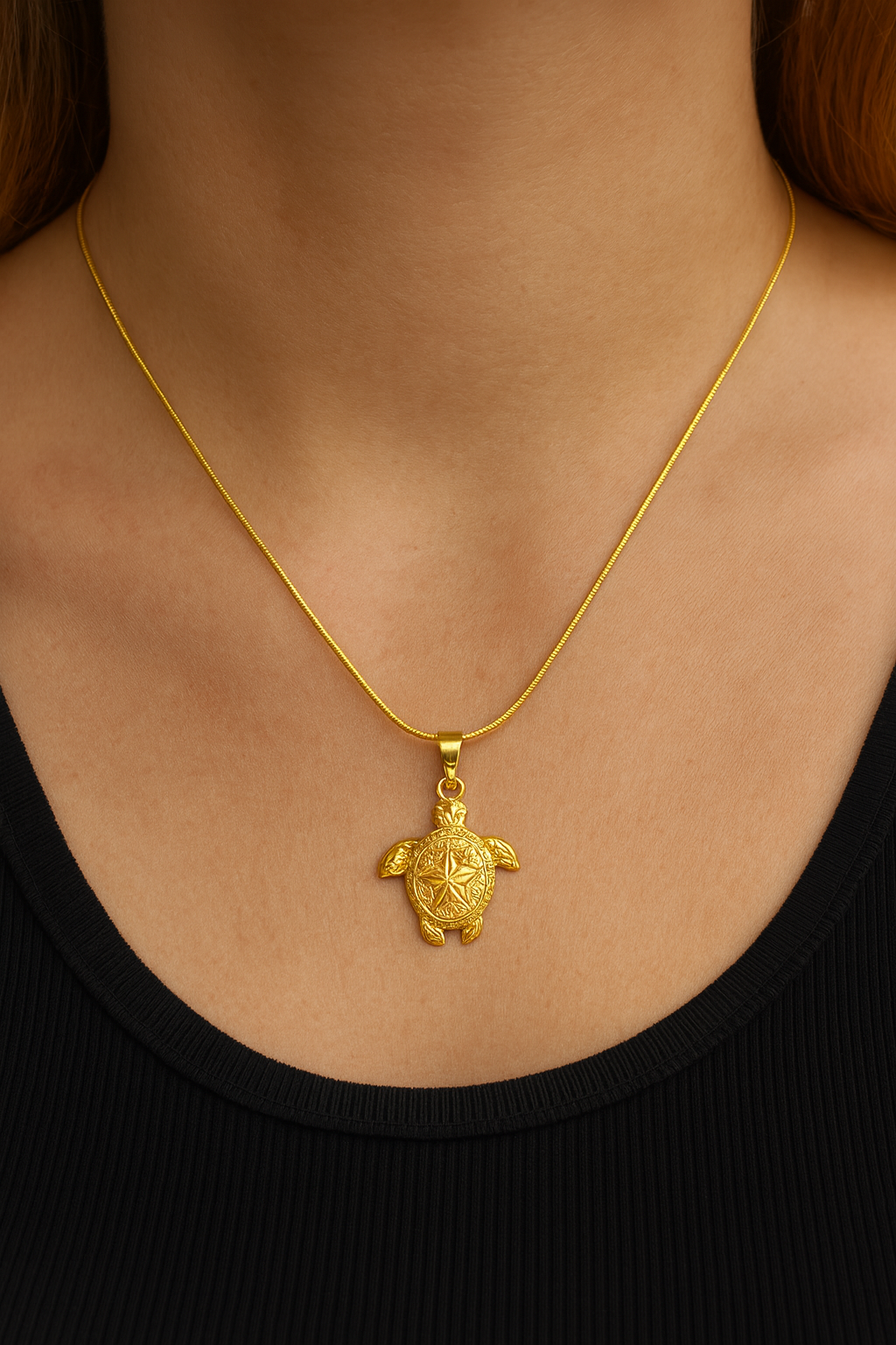 This Turtle Necklace features a finely crafted pendant symbolizing longevity and protection. Expertly designed with attention to detail, it offers a timeless accessory that complements any style while carrying meaningful symbolism.