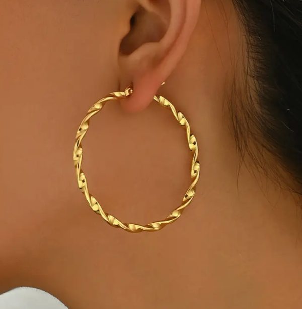 Discover the perfect blend of style and sophistication with these twist hoop earrings. Their unique twisted design catches the light from every angle, adding a captivating sparkle to your look. Lightweight and comfortable, they’re ideal for elevating any outfit, whether for a casual day out or a special evening.