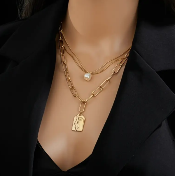 The PANDORA NECKLACE features a beautiful 3-layer pearl pendant and a face pendant, adding elegance and charm to any outfit. Made with high-quality materials and expert craftsmanship, this necklace is a must-have for any jewellery collection. Elevate your style today with the pandora necklace,