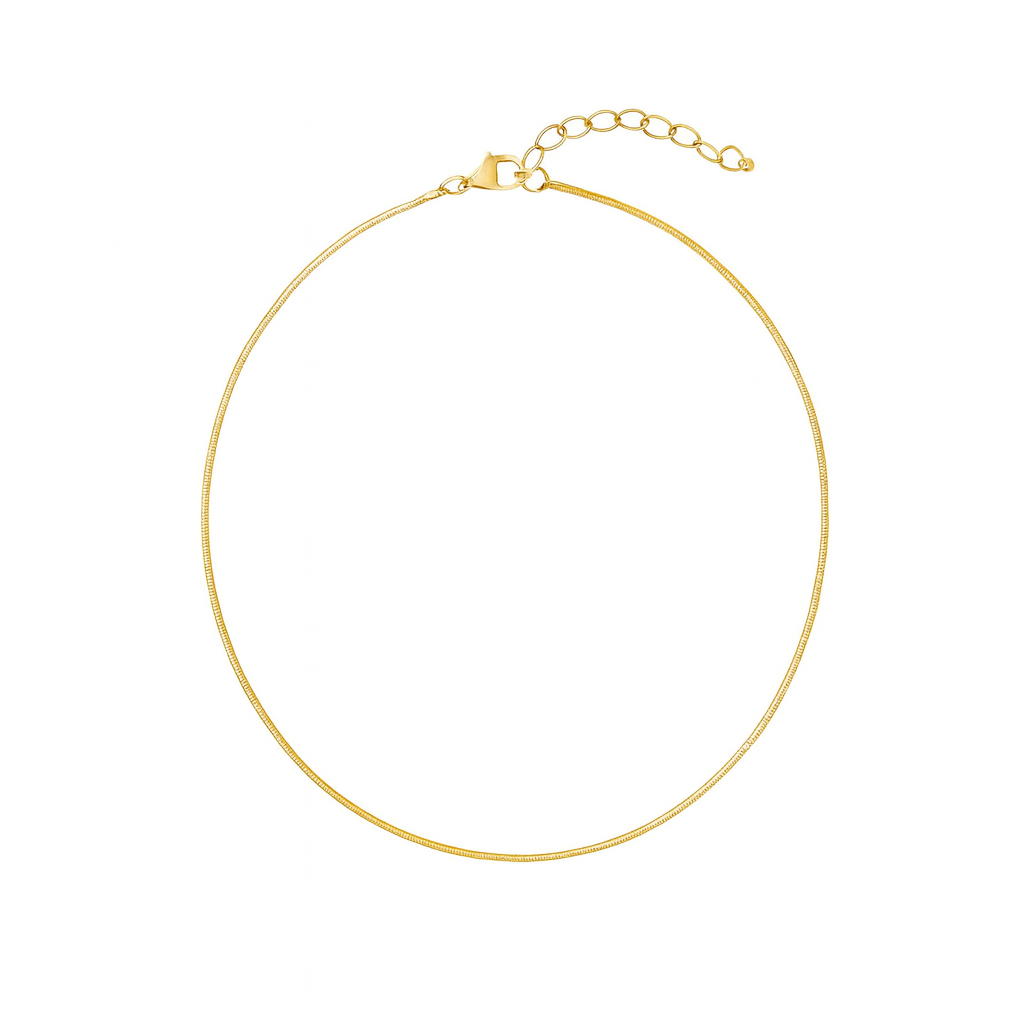 Crafted with a sleek snake chain design, it features tightly interlocking links that create a smooth, fluid silhouette. The polished finish catches the light with subtle shimmer, making it perfect for layering or wearing solo.